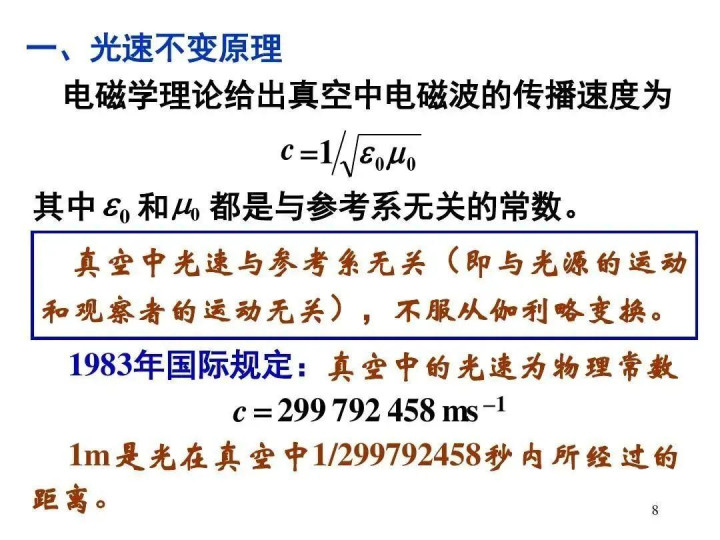 再来看光速不变旨趣:正如原文所指出的,光速 c 由真空介电常数、真空磁导率决定。