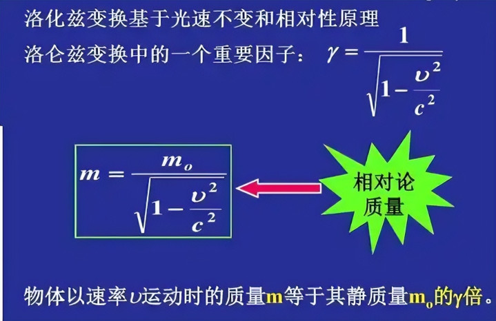 狭义相对论的中枢数学效率之一,是团结质料与静止质料的关系公式: