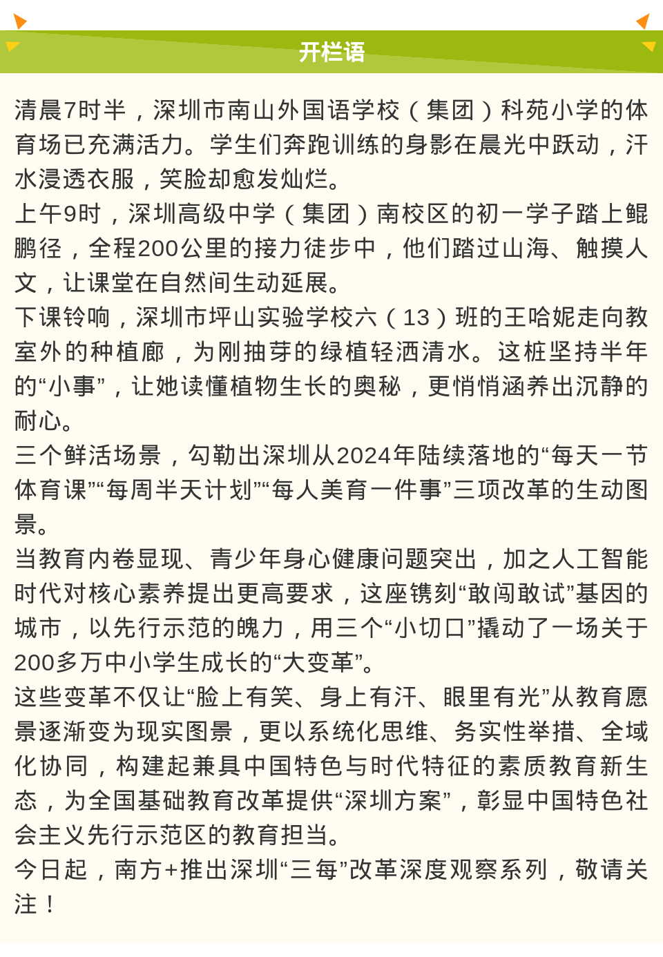 - 深圳“三每”改革不雅察①|每天一节体育课:以剖判筑基、为健康塑魂 2025-12-20