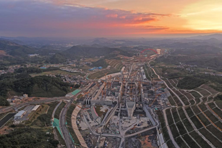 这是11月11日拍摄的广西平陆运河马说念环节施工现场(无东说念主机相片)。新华社记者 周华 摄