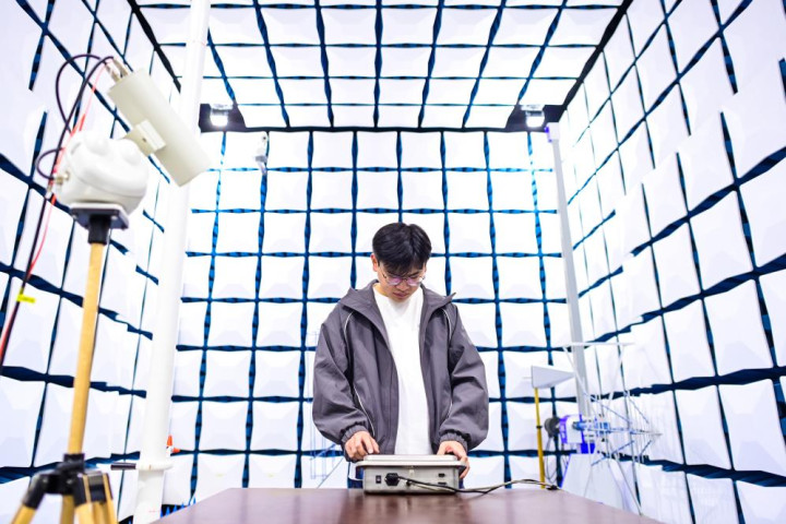 11月27日,宁波柯力传感科技股份有限公司职工在现实室内职责。新华社记者 江汉 摄