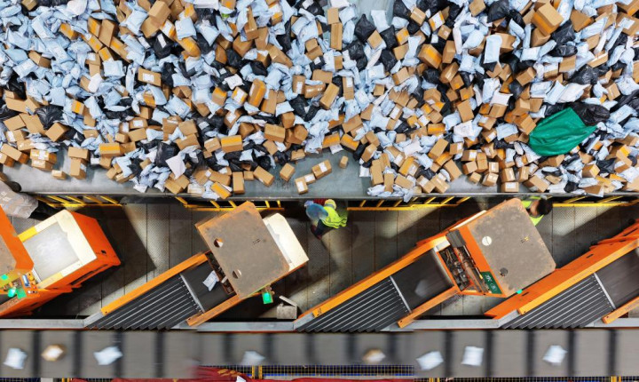 11月10日,在中国邮政集团有限公司江苏扬州邮件搞定中心,职责主说念主员在分拣快递包裹(无东说念主机相片)。新华社发(孟德龙摄)